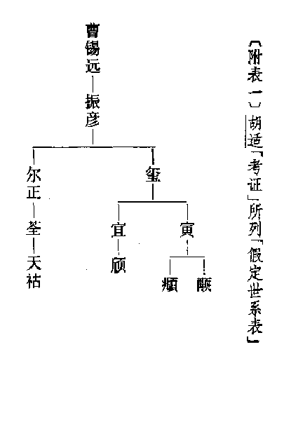 总起来说,共有两点:一、对四房曹智系下五世不明、突接锡远的情形,未有参证之前,仍持存疑态度;二、锡远以下至天祐这部分的本身,不同虚构伪造,基本上应属可信。各种资料的情形,往往异常复杂,必须分析申辩;轻信轻疑,因个别点有异而疑及全部,见某一端近似而信赖整体,皆可造成研订上的大错误。为避繁文,只简说如上;餘者可略参第三章第二节后的附记。
